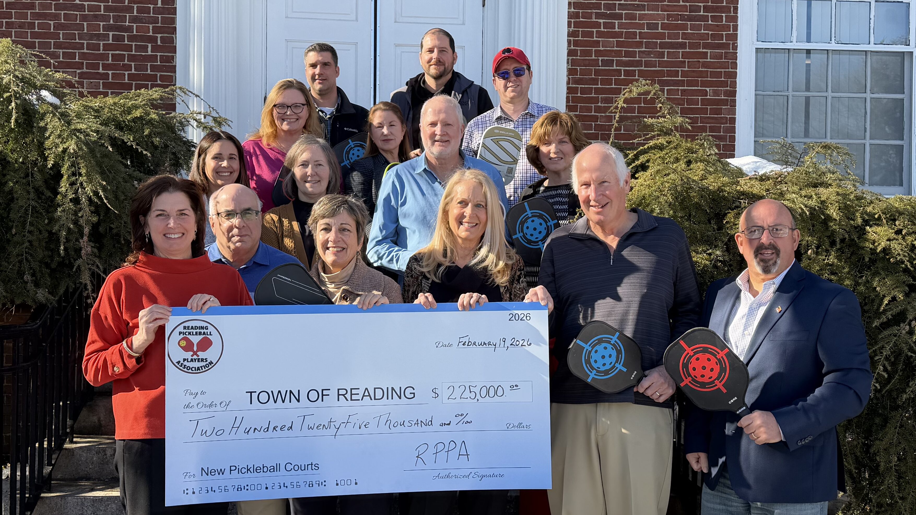READING – Reading Pickleball Players Association (RPPA) President Judy Coltman announced today the organization has completed the transfer of $225,000 to the Town of Reading to offset the cost of new pickleball courts.