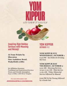 Community Invited to Uplifting Yom Kippur Services in Wakefield Wakefield, MA — Yom Kippur, the Day of Atonement, is the most sacred day of the Jewish year. It...