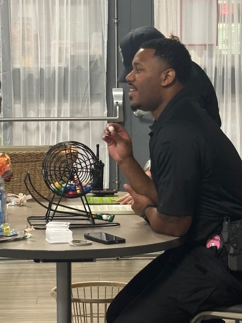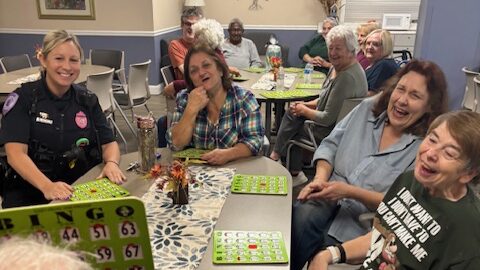 Reading, MA — BINGO WITH BADGES: Earlier last month, the Peter Sanborn community had the pleasure of hosting the Reading Police Department for an engaging “Bingo with Badges” event! The afternoon was filled with laughter, friendly competition, and wonderful connections between officers and community members. The atmosphere was lively, the conversations were heartwarming, and the prize selection was fantastic. Pictured here are (photos/IDs) Peter Sanborn Resident Carol Griffith, Officer Balboa, and residents (l-r) Regina Gomez, Denise Lawrence, and Karen Turenne; Officer DaLonn Pearson; Officers Balbo and DaLonn Pearson; Resident Kenny DeFronzo; and Officer DaLonn Pearson.