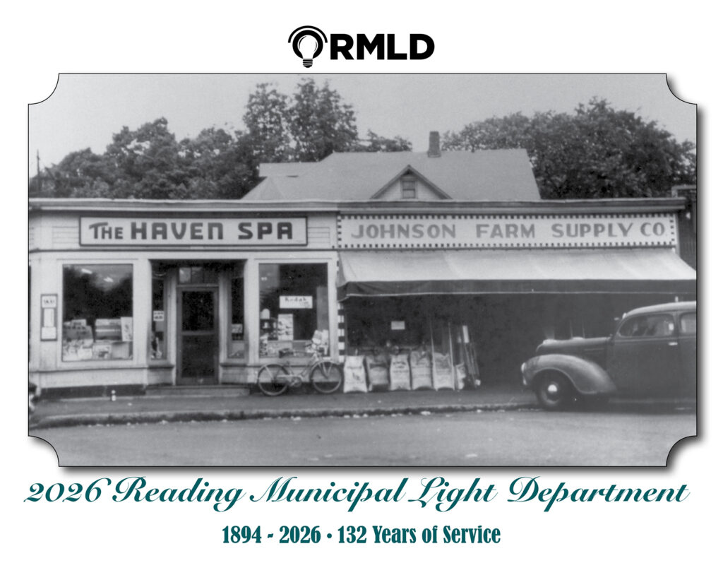 READING, MA – Reading Municipal Light Department (RMLD) is pleased to announce the release of the 2026 historical calendar. This classic calendar explores the deep histories of our communities through photos and commentary and features energy-saving tips and resources from RMLD.
