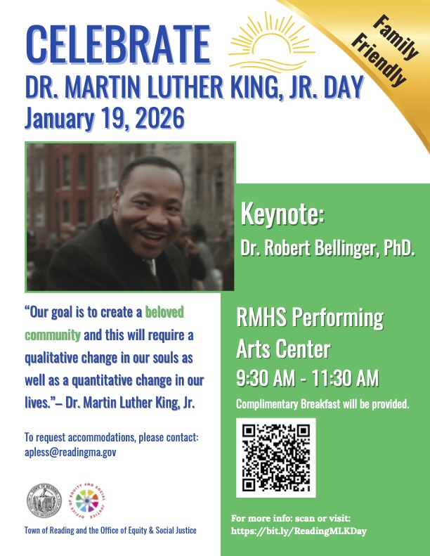 This annual event, sponsored by the Office of Equity and Social Justice, the Town of Reading, the Reading Public Schools, and the Reading Public Library, is free and open to everyone.