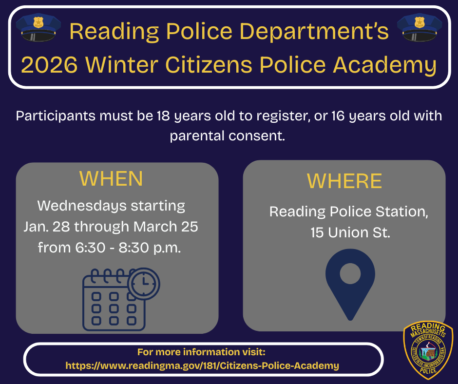READING — Chief David Clark has announced that the Reading Police Department is hosting its Winter 2026 Citizens Police Academy (CPA) starting in January.