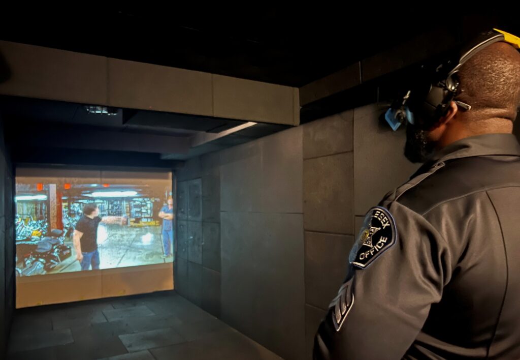 The MTC, which is staffed by two MSO officers, is equipped with state-of-the-art training technology that allows officers to engage in interactive, video scenarios focused on communication, de-escalation, and strengthening their decision-making skills. Some scenarios that were focused on during this year’s training included moving target identification and a disturbance call in which officers are able to attempt to de-escalate and resolve the incident using a less lethal option. Officers also completed several different drills in low-light conditions while inside the MTC.