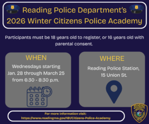 Reading Police Department to Host Annual Citizens Police Academy READING — Chief David Clark has announced that the Reading Police Department is hosting its Winter 2026 Citizens Police Academy...