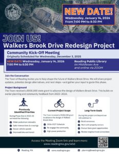 Join the Conversation on the Future of Walkers Brook Drive The Town of Reading invites residents to learn about proposed design options, hear project updates, and share feedback to...
