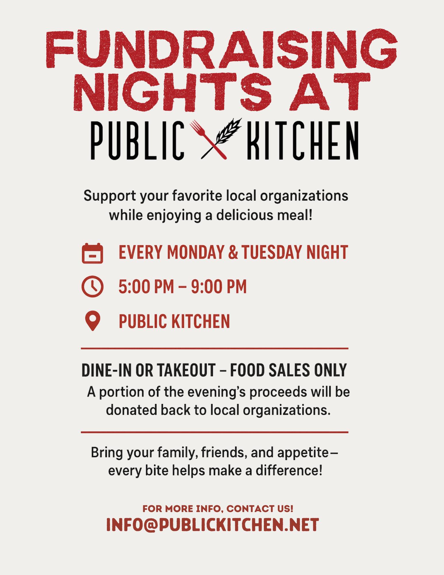 Simply mention the fundraiser when requesting your check, and a portion of your food purchase will be donated directly to our cause.