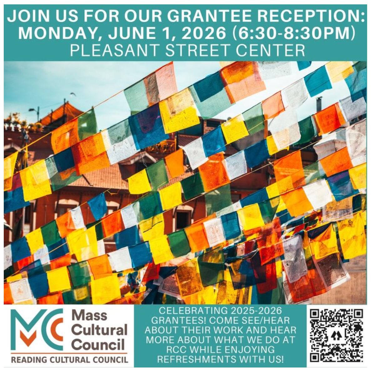 Attendees will have the chance to meet grantees from the 2024–2025 funding cycle and enjoy a slide presentation showcasing a wide range of creative projects made possible through the support of the Massachusetts Cultural Council and the Reading Cultural Council.